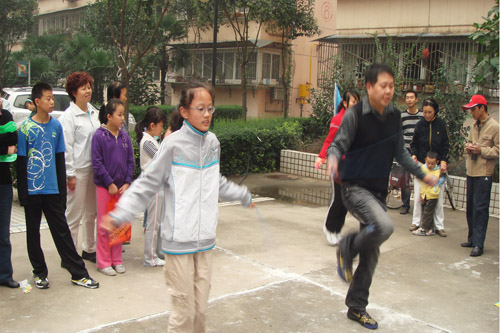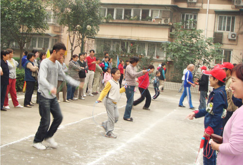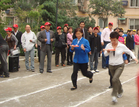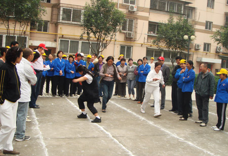 为庆祝中华人民共和国建国60周年和喜迎“中秋”佳节,我院于十月七日在二府庄小区成功举办了“西安市中心医院二府庄小区第二届职工家属趣味运动会”。 上午九时许,运动会在崔主任主持下召开。参加开幕式的有我院领导冯关力、薛军、刘遵礼和三产办副主任张立新同志,以及区、街道办相关负责人。冯院长对我院二府庄小区筹办这次职工家属趣味运动会给予了充分的肯定:三产办暨小区物业办通过举办多种形式的活动,不仅活跃了小区职工家属的文化生活,使邻里间建立起了友谊与和谐的桥梁;而且还提升了我院小区职工家属的全民健身意识,增强了物主与物业办的相互信任。 这次运动会设有个人跳绳、集体跳绳、自行车慢骑、托球跑、乒乓球及拔河比赛等项目。运动场上参赛人员个个摩拳擦掌,你追我赶,奋勇拼搏;围观群众喜笑颜开,呐喊助威。大家兴奋地说:这次趣味运动会不仅丰富了我们的业余文化生活,而且还对构建和谐社会,增强社会主义精神文明建设起到了积极的作用。