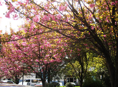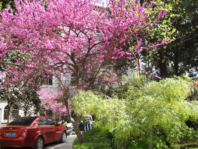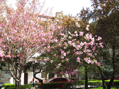 玉兰皎皎碧桃红, 樱花绚烂草葱茏。