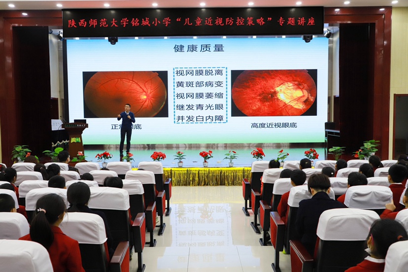 青少年近视问题,在我国发展迅速并日益严重,国家对儿童青少年近视问题愈发关注并且正提升至前所未有的高度。12月8日,全国综合防控儿童青少年近视专家宣讲团专家、陕西省综合防控儿童青少年近视专家团副团长、西安市中心医院眼科主任——杜兆江博士受邀来到陕西师范大学铭城小学为同学们做“儿童近视防控策略”近视防控知识讲座。学校领导、老师和学生约200余来到现场听课,并通过网络平台向其他学生及学生家长进行现场直播。