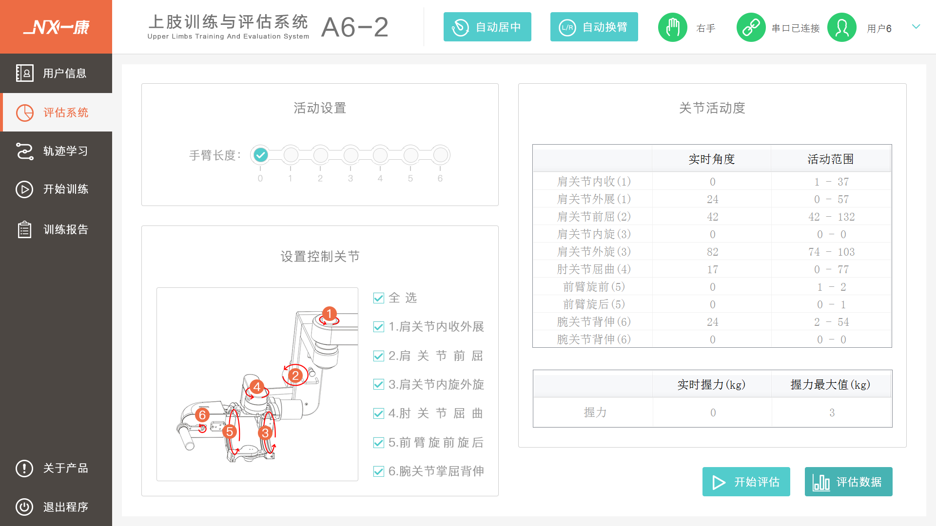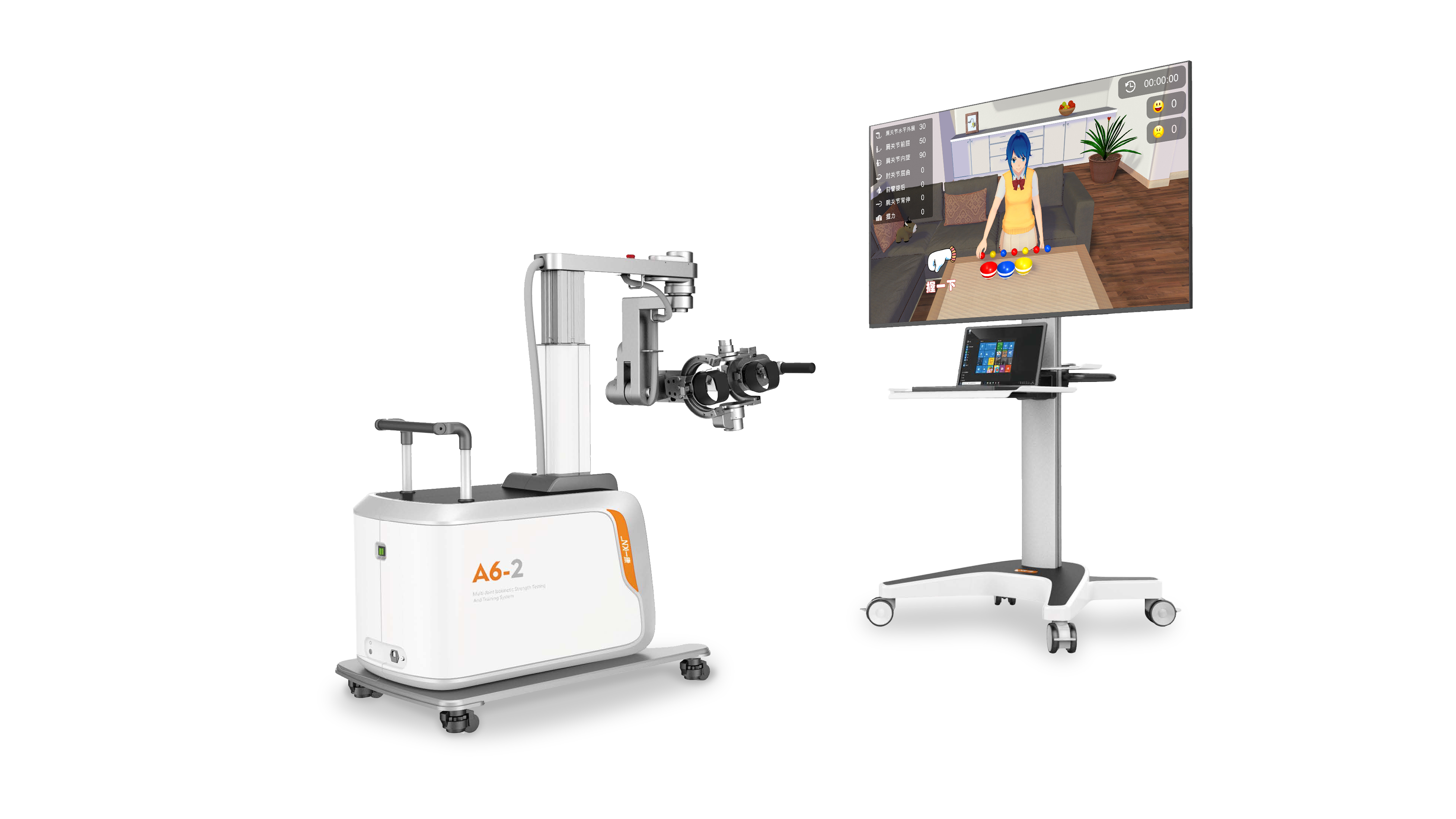 这款上肢康复机器人叫做“上肢训练与评估系统A6”的三维上肢康复机器人,是国内首款实现临床应用的AI三维上肢康复机器人,不仅能结合康复医学理论,实时模拟康复医学人体上肢运动规律,还能够在三维空间下实现六个自由度的训练,实现了三维空间的精确控制。并可针对于上肢肩、肘、腕三大运动关节的六大运动方向(肩关节内收外展、肩关节前屈、肩关节内外旋、肘关节屈曲、前臂旋前选后以及腕关节掌屈背伸)进行精准评估,为患者制定针对性训练。