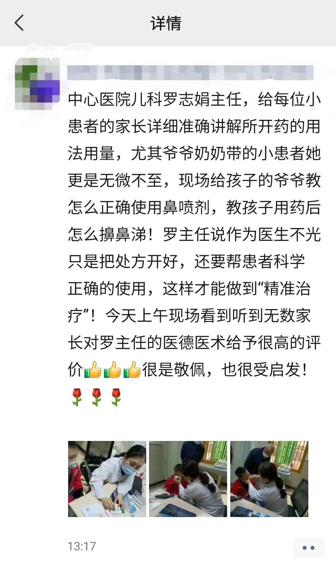 “医生不光是要把病治好,把处方开好,还要教会患儿或家长怎样科学合理的使用药物,这样才能做到精准治疗。”这是儿科罗志娟主任在给规培生讲解时说道的。那么,“精准治疗”又是什么?作为一名儿科医生,当你面对哭闹不止的患儿时;面对焦急等候的患儿家属时;面对“下一个又下一个”看不完的小患者时;依旧保持着那份从容和淡定,认真仔细的为每一位前来就诊的患儿检查、诊断,面对患儿家属一遍又一遍的询问,更是不厌其烦的耐心的解答。我想,这些便是“精准治疗”。