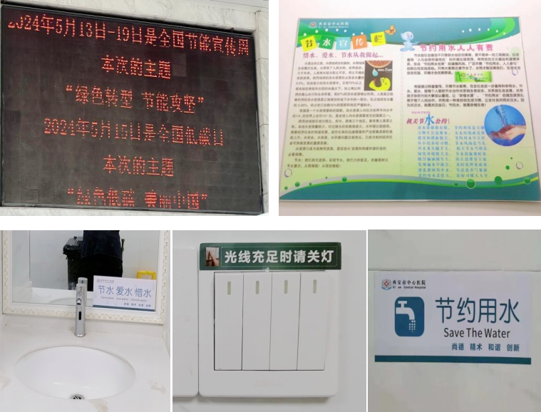 宣传周活动期间,西安市中心医院积极践行活动要求,倡导干部职工绿色低碳办公和生活。做到节约用水;人走电断;绿色出行;办公设备零待机能耗;打印、复印文件采取双面打印,节约用纸;日常工作选用低耗能、环保办公用品等。院内通过节能宣传展板、LED滚动播放节能宣传标语、易拉宝展框等方式向全体职工开展节能宣传。