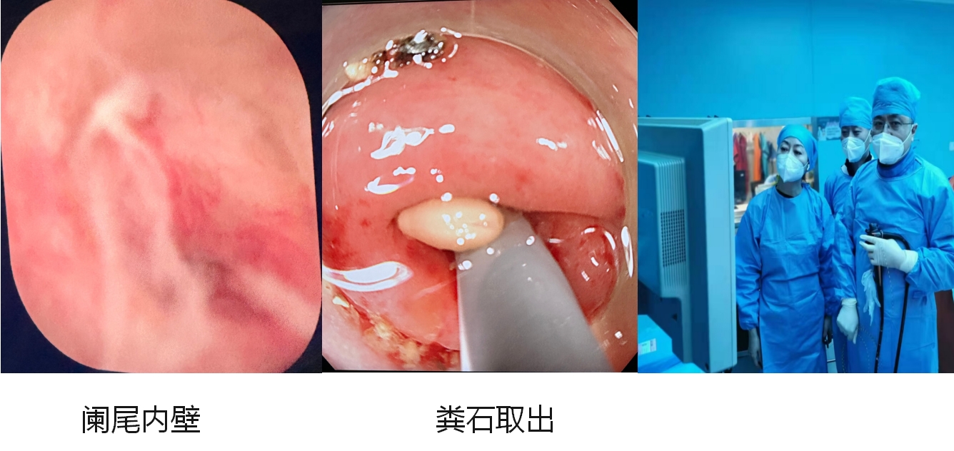 近期西安市中心医院消化病院接收多名右下腹痛患者,经腹部CT或B超诊断急性阑尾炎、阑尾粪石,传统药物保守治疗效果较差,外科手术切除阑尾风险高,患者不愿接受手术治疗。在庄坤主任指导下,韩坤主任医师及杨振威副主任医师为患者进行一次性子镜“eyeMAX洞察”可视化内镜逆行阑尾炎冲洗引流术(ERAT),冲洗出粪石及脓液,患者术后第一天腹痛消失,第二天即可出院。