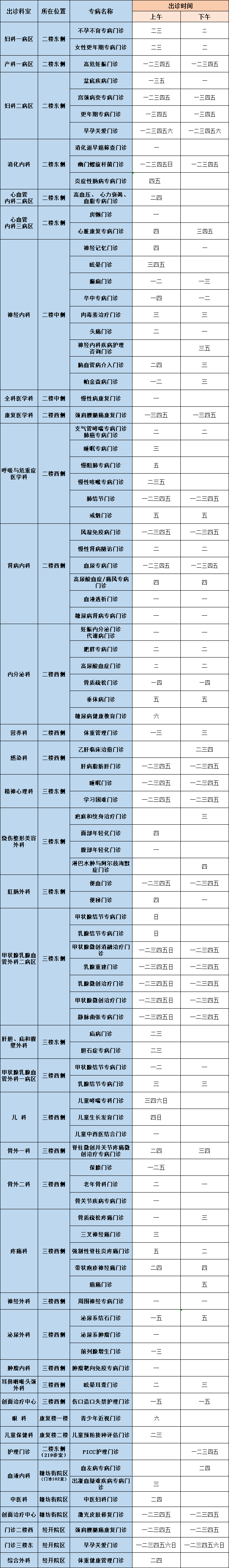 专家出诊表