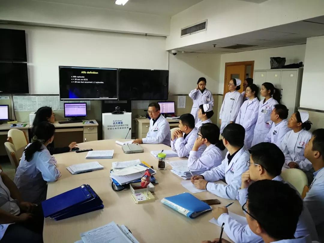 应我院心内科马锋主任邀请,昨日美国华裔心脏医师协会主席刘秀实教授来院进行学术交流,与心内科介入团队完成一例阵发性心房颤动的射频消融手术并取得了圆满成功。今日刘秀实教授在心内科又做了关于心房颤动最新诊疗进展的学术报告,心内科医护人员、骨干进修医师、规培医师及进修医师40余人参加了学术报告。精彩的学术报告激发了医护人员的学习热情,大家积极提问,与专家热烈讨论,会后心内科医护人员都觉得受益匪浅。