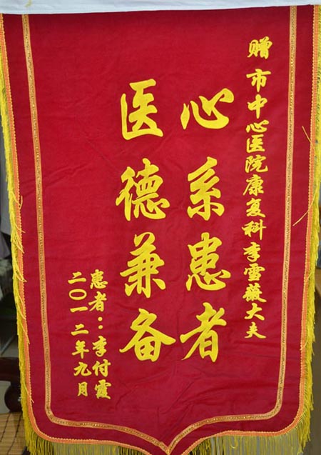患者送消化科韩坤王田芳、康复科李雪薇、普三医护人员锦旗