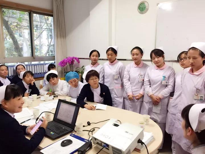 2017年11月10日14:30在肛肠外科医生办公室,如期举行了护理教学查房,周主任送来了茶叶和水杯,关心地说全力支持,积极准备,预祝圆满。护士长和常医生早早准备好投影设备,试播PPT,花粉老师领着我和同学们又过了一遍查房流程,希望我们展示最好的学习成绩。 当悦耳的钢琴曲响起,我们期待已久的查房拉开了帷幕,护理部总带教张杰护士长、戚蕾护士长及全院护理带教老师齐聚肛肠科医生办公室。首先由护士长杜虹向大家致欢迎词并主持,大帅哥常伟医生深入浅出的介绍肛周脓肿相关知识,一丝也看不出下夜班的疲劳;其次孙花粉老师带领我和同学进行肛周脓肿病例查房,从汇报、查体、提问、回答到讨论环节,学习气氛浓厚,内容丰富,各位带教老师也对护理问题进行了评价,提出改进的办法;最后张杰护士长及各位代教老师对我们的出色表现提出表扬,对肛肠外科的护理教学工作给予高度的肯定,同时也提出了中肯的建议,让我们开阔了视野,提升了学习能力,收获满满,好开心能在中心医院这个大家庭里快乐学习,增长知识。