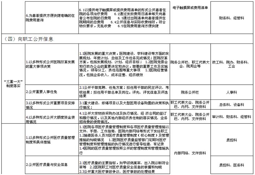3.利用职工代表大会、院周会、年终(中)总结会、中层干部会、党政工联席会、职工座谈会等形式进行公开。