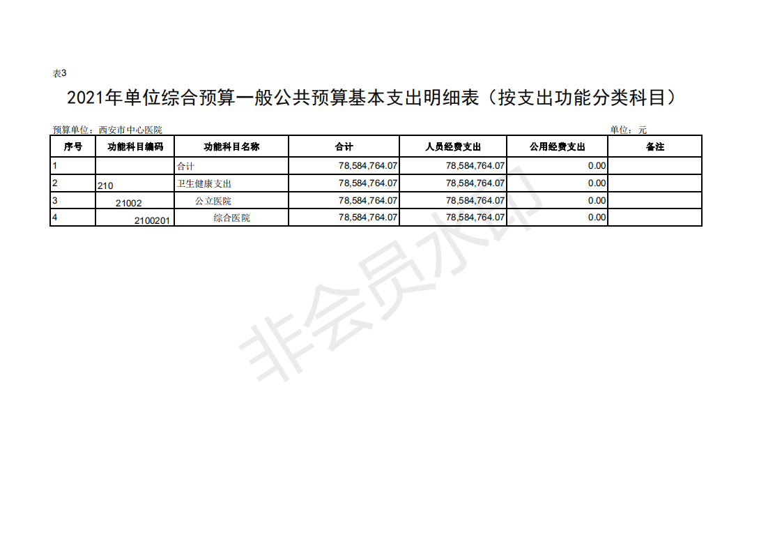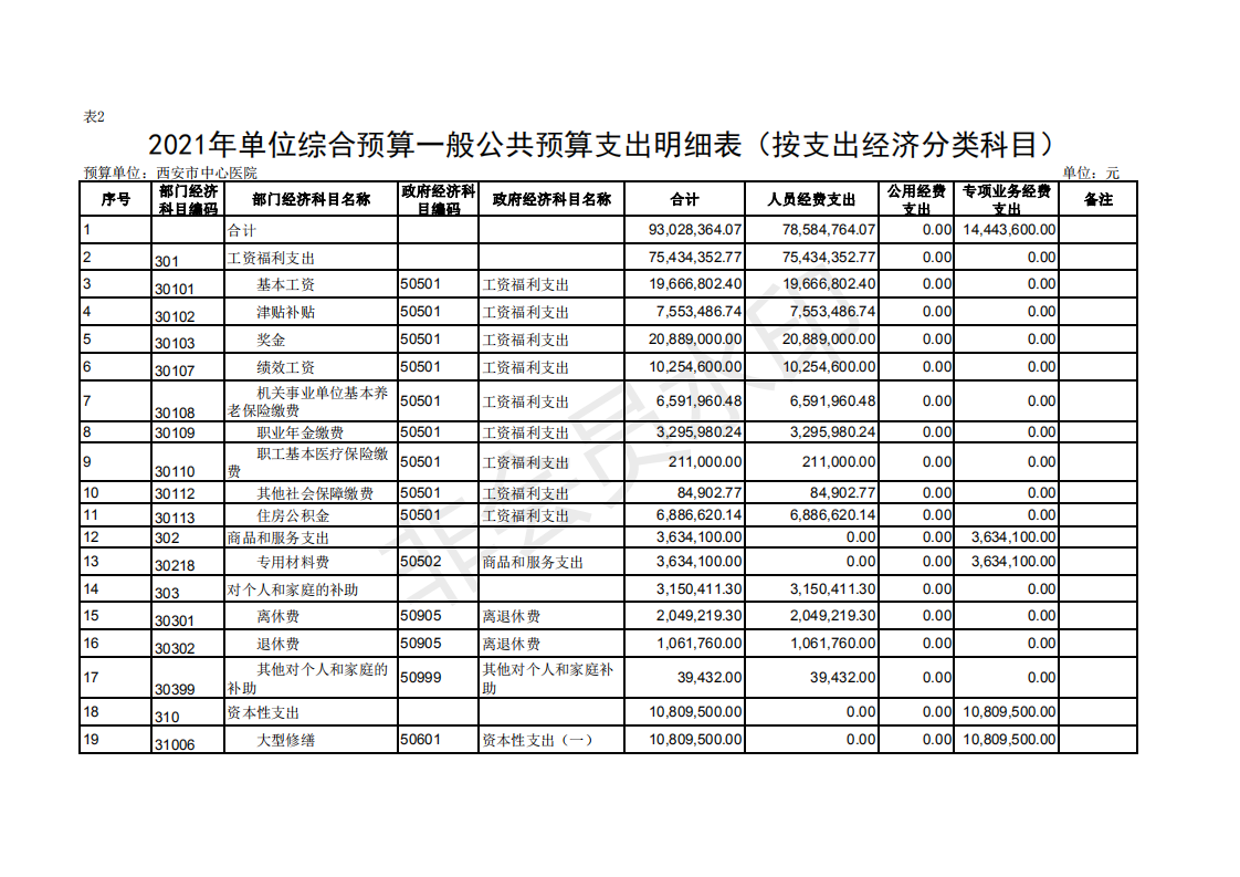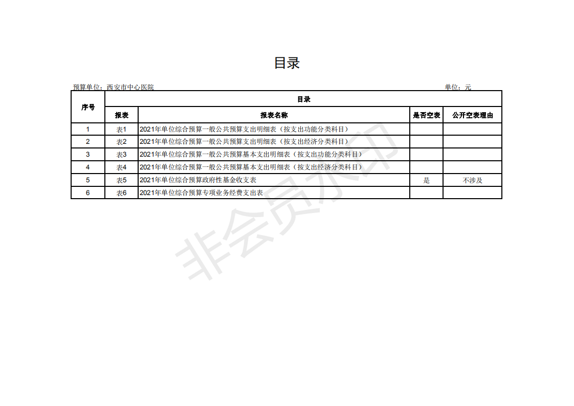 西安市中心医院2021部门预算公开报表