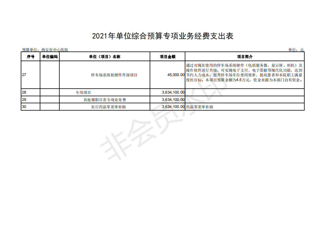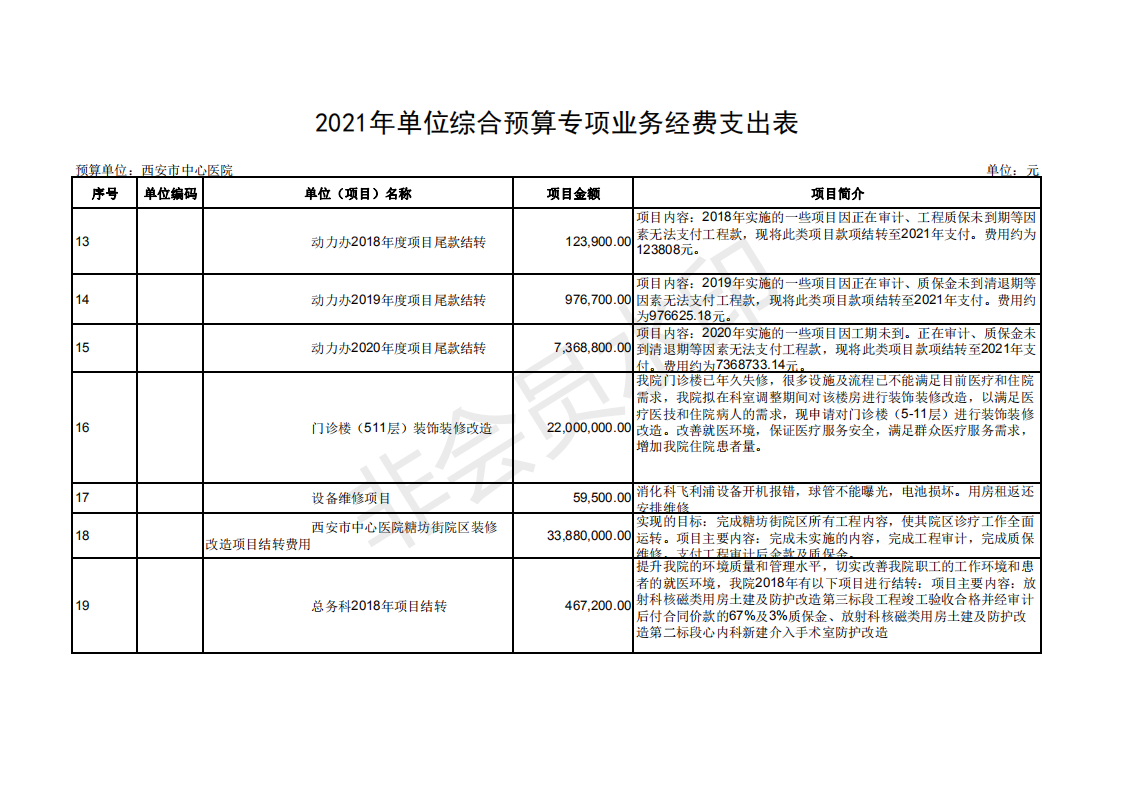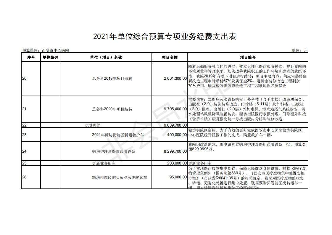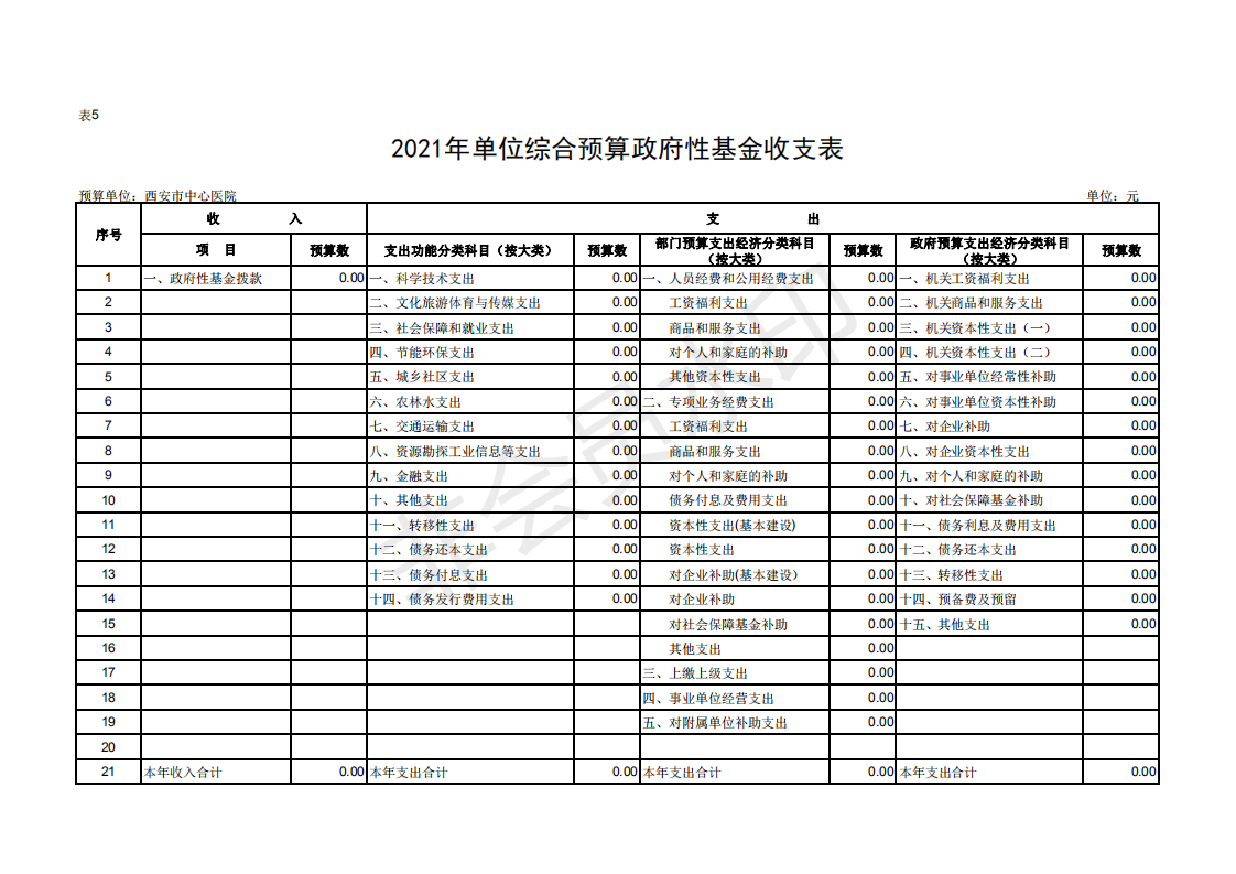 西安市中心医院2021部门预算公开报表