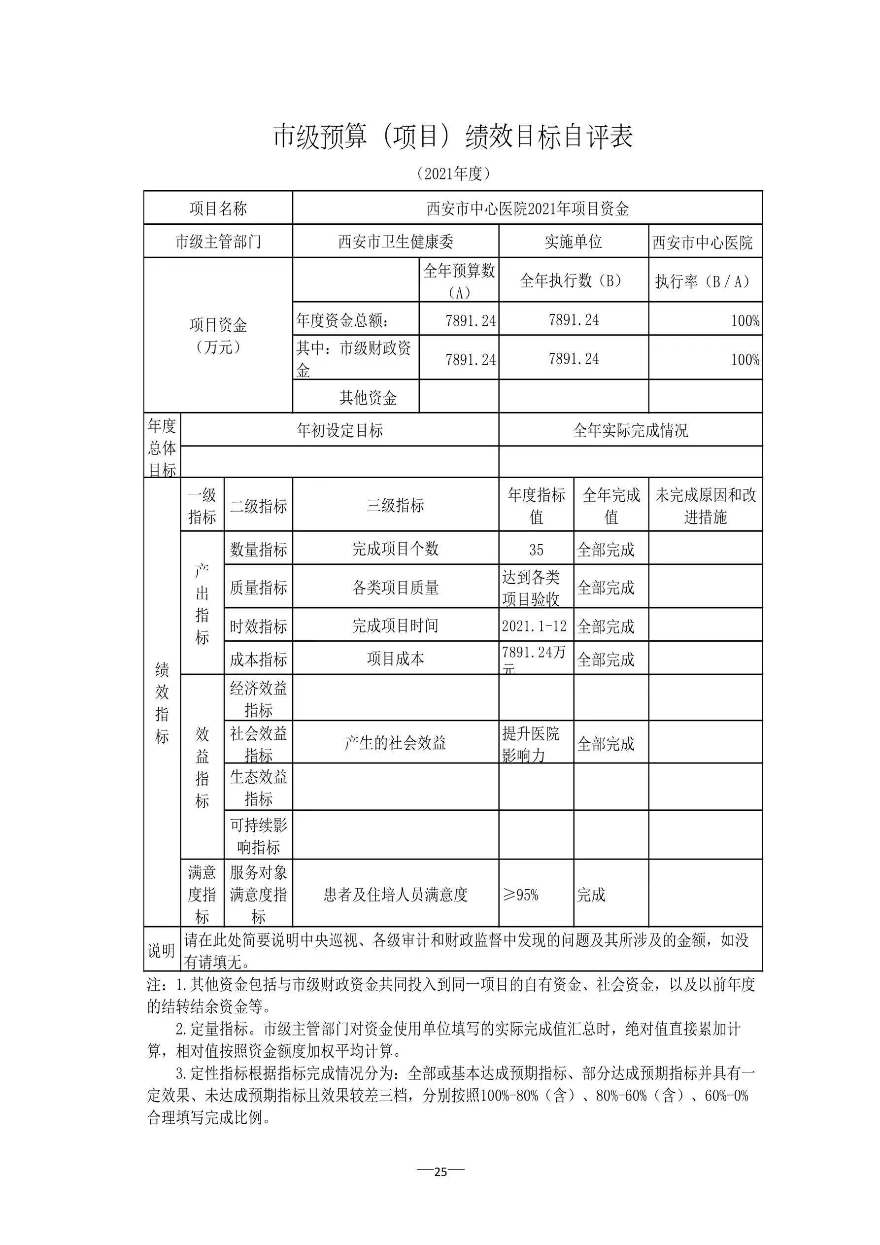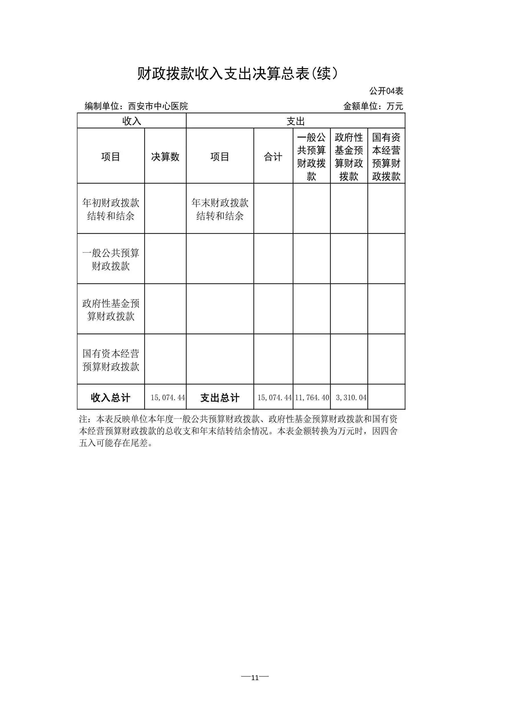 西安市中心医院2021年度单位决算