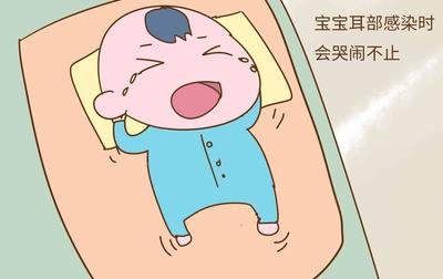 5. 耳部感染。因其生理原因,宝宝患上呼吸道感染时会引起中耳炎。若宝宝有哭闹、用手抓耳,用头蹭枕头伴鼻塞、发热等现象时,就要警惕中耳炎了,要及时带宝宝去医院检查治疗。