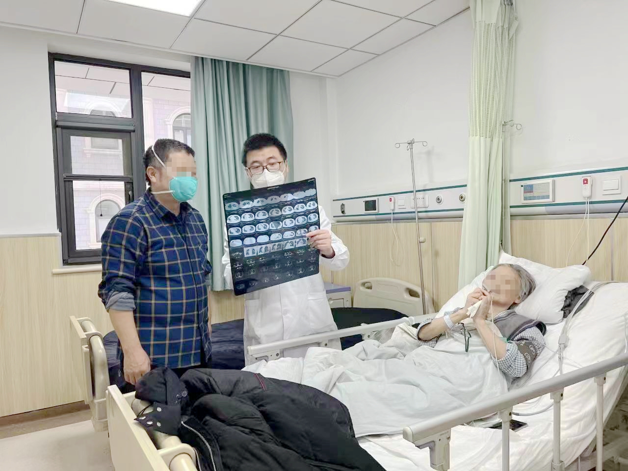 西安市中心医院,这座刚过完70周年纪念的老百姓熟知的医院,在疫情放开伊始,即全院打通,所有科室开始收治新冠患者。吉老太太因为病情危重,这天通过医院绿色通道紧急安排住进了满是新冠感染患者的骨二科,被安排在了预留给骨科危重患者的唯一一张床位。入院当天,老人血压低到无法测出,血氧饱和度仅有70%多,胸部ct显示双肺大白肺。对于吉老太的骨科主管医生刘邦定无疑是一次巨大的挑战,像所有的外科医生一样,他一边请相关科室内科医生会诊,一边学习新冠病毒感染的相关诊疗,一边凭借10年的医治老年骨科病人的经验,在郭华院长、张延平主任、杨寅副主任领导的骨二科专家团队的指导下,迅速开展了对吉老太的救治。在及时的救治后,患者血压可以测出,但也只有79/46mmHg,心率还是很快,心衰指数和心肌损伤指数很高,心力衰竭+呼吸衰竭,几乎每天都在咯血,各项检查化验指标都很差,差的看不到希望,家属已经绝望地开始准备后事。然而,没有任何一个医生会放弃自己的病人,主管医生执着地继续积极治疗,经过半个月的不懈努力,在重症医学科、心内科、耳鼻喉科、神经内科、普外科、妇科等多个科室同事十余次会诊的协助指导下,在骨二科老年骨科中心护理团队姐妹们的优质护理下,老太终于转危为安,大白肺明显开始走向恢复,呼吸衰竭+心力衰竭已经纠正(血氧饱和度吸氧状态下最高可以达到100%,无吸氧状态下91%;心率血压基本正常),感染指标、肝肾功、电解质等各项指标已经完全正常。家属激动的表情这辈子恐怕都令人难以忘怀。