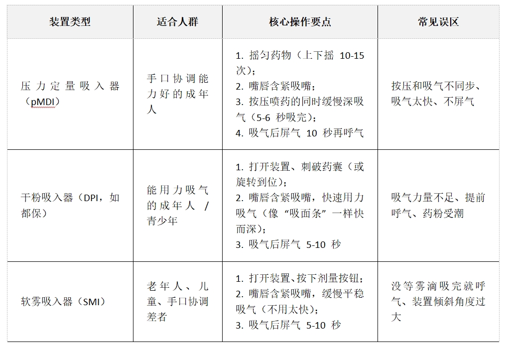 哮喘常用的吸入装置有三种,每种的 “操作要点” 都不同,用错了效果会天差地别,快对照看看你用对了吗?