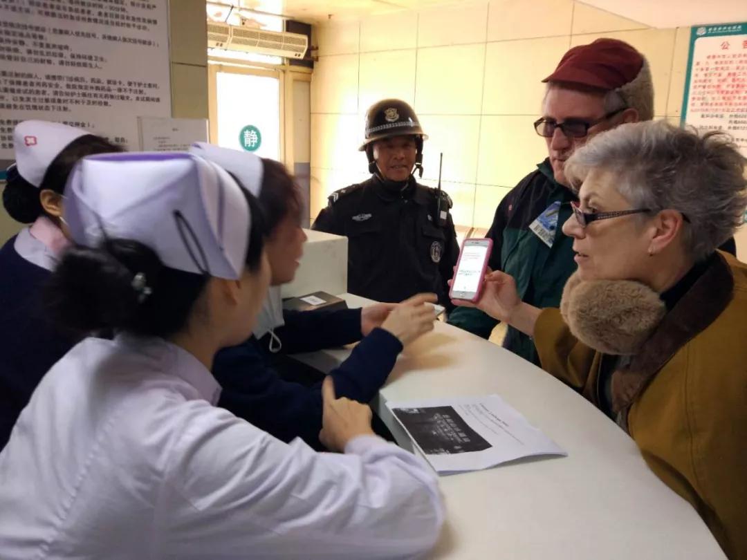 2018年1月15日上午11点10分,急诊分诊台前来了两名外国友人,从他们焦急的表情判断,一定是遇到了难题,是来就诊吗?