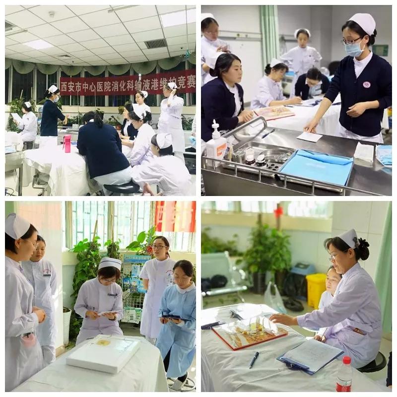植入式静脉输液港(PORT)又称植入式中央静脉系统,是一种可植入皮下长期留置体内的静脉输液装置,主要由可供穿刺的注射座和静脉导管系统组成,可用输注各种药物,化疗及静脉营养等治疗,输液港具有留置时间长,携带方便,不影响美观等优点,从而被患者接受用于临床,但带港期间的维护尤为重要,为了进一步规范护理人员输液港的操作流程,提高患者对护理工作的满意度,提升护理服务质量,西安市中心医院消化科在护理部张巧玲主任和科室庄坤主任的大力支持下,于2018年12月16日下午在消化内镜中心举办西安市中心医院消化科第一届输液港维护竞赛。大赛分理论考试和操作比武两部分。全科22名护士参加。