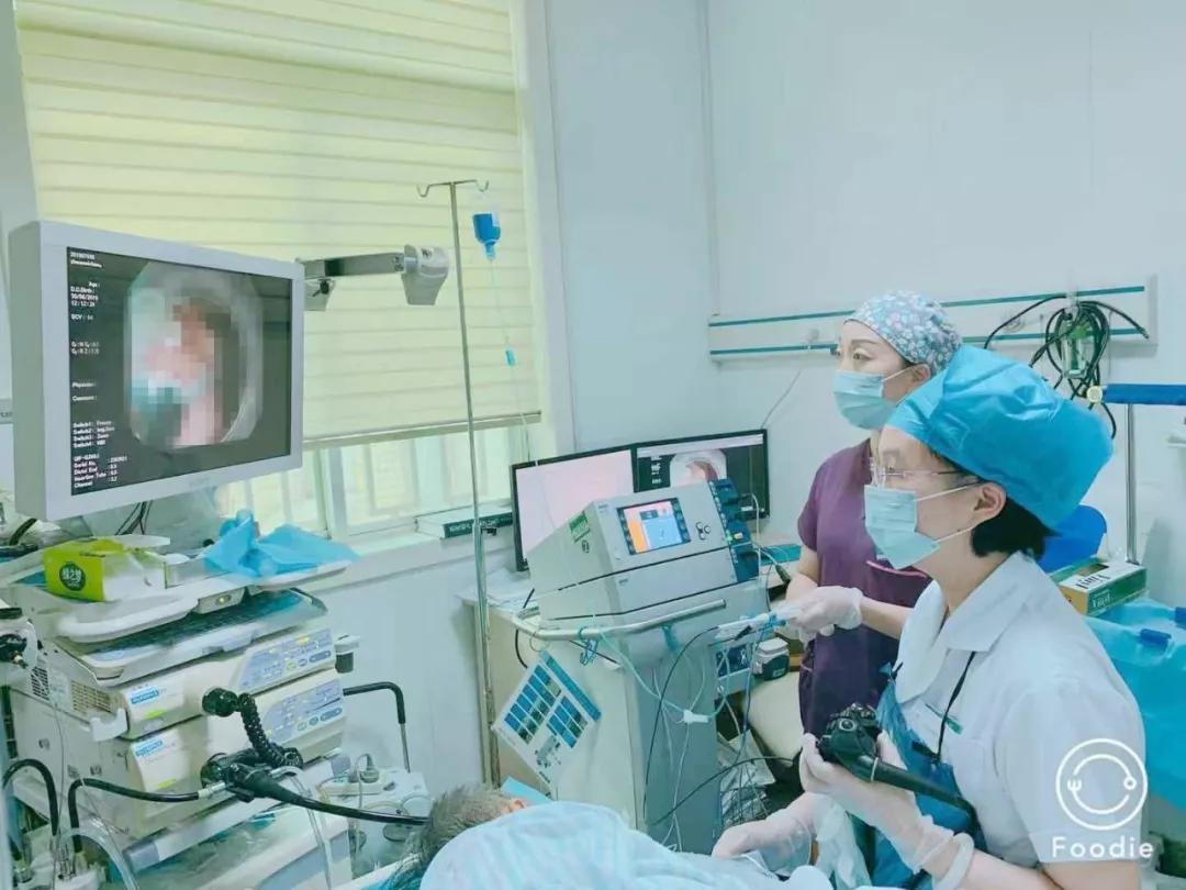 手术由司望利副主任医师操作方雅丽副主任护师配合,由于这个异物坎墩的时间长,周围胃粘膜严重充血水肿,异物的一边已经深深的扎在胃里。司望利副主任医师耐心细致的将异物周边充血水肿的黏膜冲洗干净,方雅丽副主任护师看准时机与大夫默契配合将异物夹住。历时半个小时,成功取出胃内金属异物(一长约4cm绣花针),并给于钛夹夹闭创面。由于术后患者仍不能进食,大夫给予了相应的处理措施。术后患者安返病房,继续给于营养支持治疗。