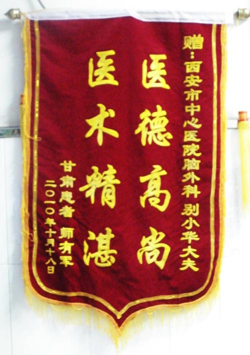 西安市中心医院董济民、张晓炜及全体医护人员: 西安市中心医院脑外科别小华大夫: 医术精湛 医德高尚 医德高尚 医术精湛 患者:苗建国 甘肃患者: 师有军 2010.10.23 2010.10.08