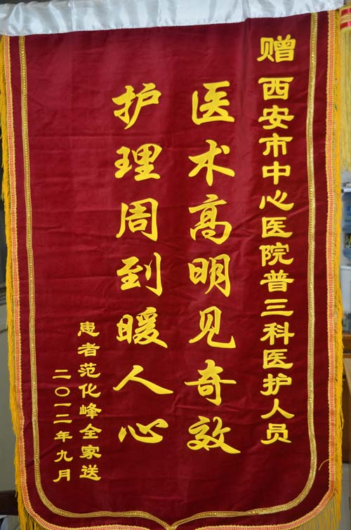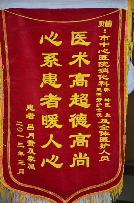患者送消化科韩坤王田芳、康复科李雪薇、普三医护人员锦旗