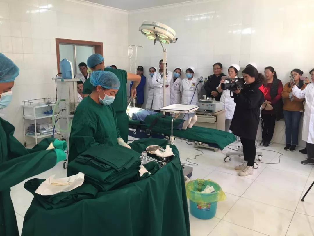 但是,经过了解,札达县医院每年的手术量极少,医务人员平日的专科学习机会有限,尤其是护理人员中,全院没有一名手术室专科护士,人员的实践能力几乎为零。培训迫在眉睫,时间紧、任务重,刘静立即根据该院情况,制定了完善的<<札达县医院手术室专科护士培训计划>>,护理部从全院护士中,挑选出两名藏族护士作为专科护士进行培训。虽是短期,虽只有两名学员,但面对没有任何手术室工作概念的藏族护士来说,培训任务同样艰巨,内容一个也不能少,按照2018版<<手术室护理实践指南>>的标准,刘静带着两名护士早上手把手的教,下午实打实的练,跟着认认真真的考,几周下来,我们的藏族小护士干起手术室工作来,已经有模有样了。但是,他们从来没有配合过一例手术,理论和实践难以结合,在全年的手术量都在个位数的现实情况下,刘静想到了解决办法,“手术情景模拟演练”,但是,现实情况又给刘静出了难题,县医院本院的麻醉及外科医生的知识经验也不丰富,要想“演练”,就得全体人员从头开始学!指定了详细的“演练方案”后,刘静带领参加“演练”的所有队员,展开了“传、帮、带”式的培训。她只有一个信念,不管基础多差,一定要按照国家标准教会这里的医务人员手术的配合流程和常规。功夫不负有心人,刘静带领学员们从最基础的开始,一遍一遍讲,一遍一遍练,终于,将一场精彩的“手术情景模拟演练”呈现出来。